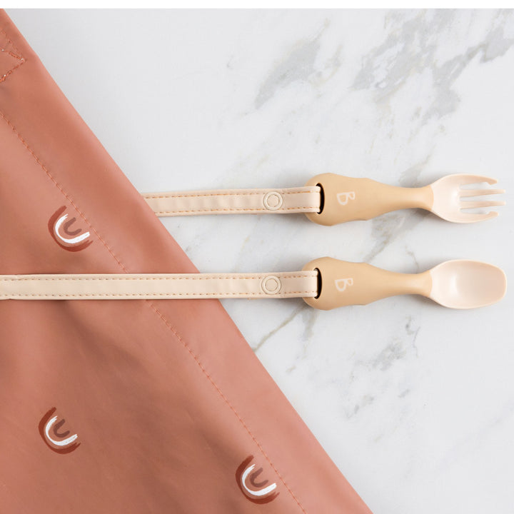 Coverall Weaning Chasing Rainbows Bib + Handi Cutlery Fawn