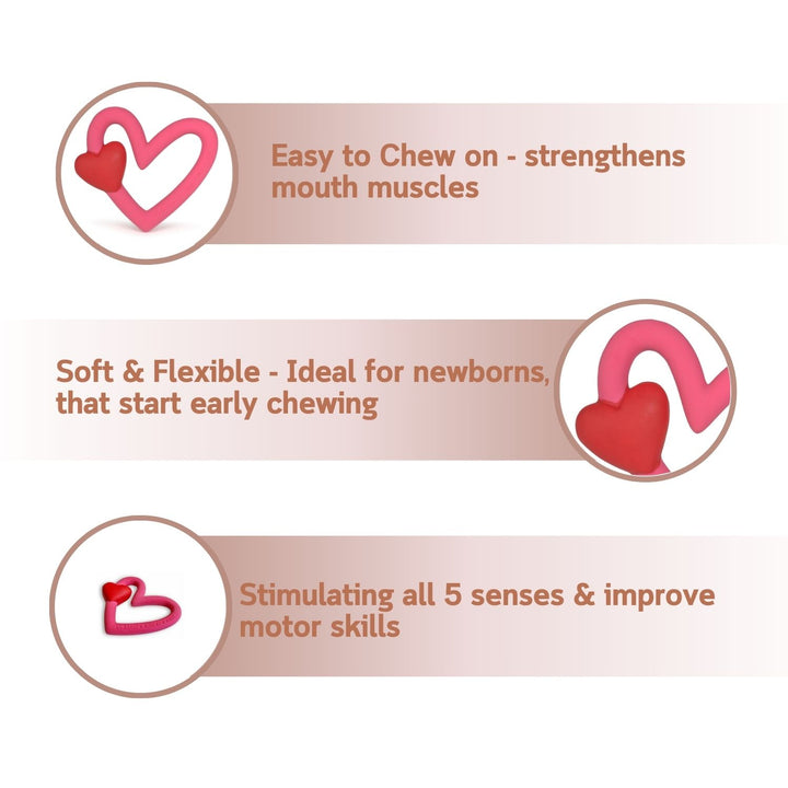 • Soft, easy to grasp and safe to chew. Stimulates baby's senses and soothes teething gums.
