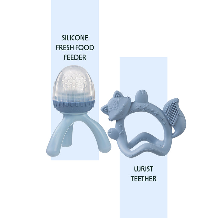 Silicone Fresh Food Feeder + Wrist Teether Blue