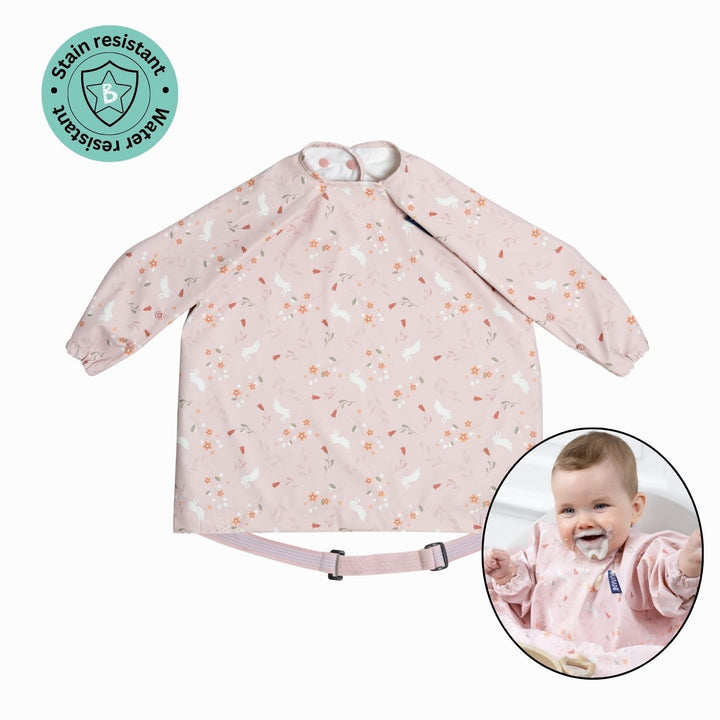 Long Sleeve Coverall Weaning Bib Botanical Bunnies Pink